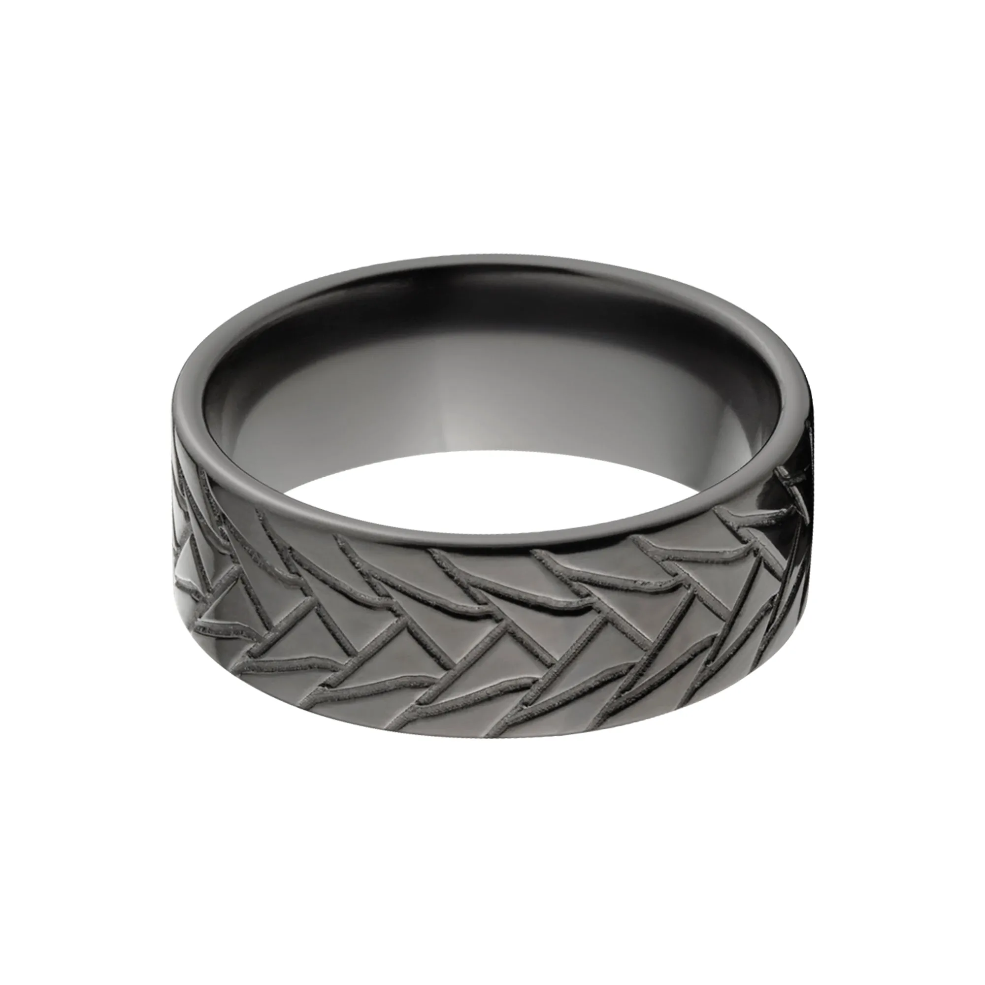 Striking Sophistication: Black Zirconium Tread Ring - Men's Wedding Bands